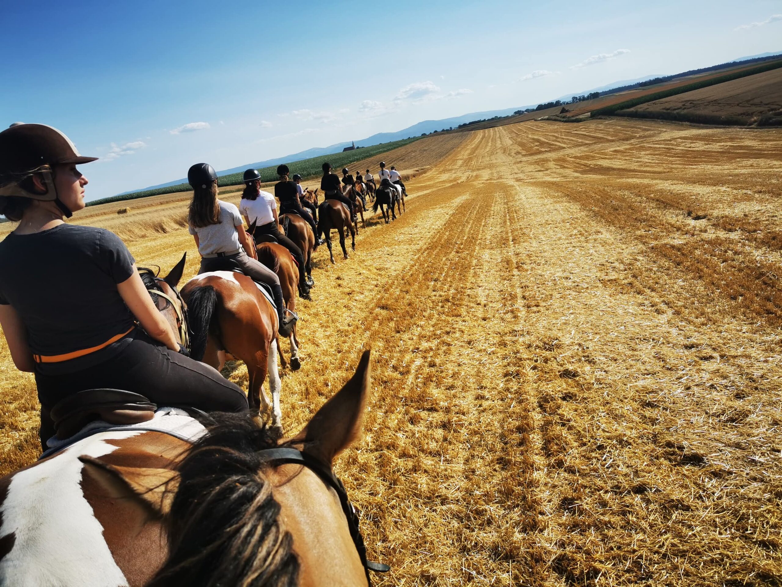 After a hearty breakfast, we will go to our first meeting with the horses, where we will select them to suit our individual preferences. Then, our calm, well-trained companions will take us on a quiet ride through the beautiful gardens of the nearby castle. The soaring towers, fountain, and park full of canals and charming bridges will make you feel like you’re in a fairy tale. We will then return along paths surrounded by fields and meadows to our starting point – a backyard stable belonging to a family with a multi-generational tradition of horse breeding. We will conclude the day with a shared dinner at an agritourism farm, where delicious regional dishes will be served in a charming setting.